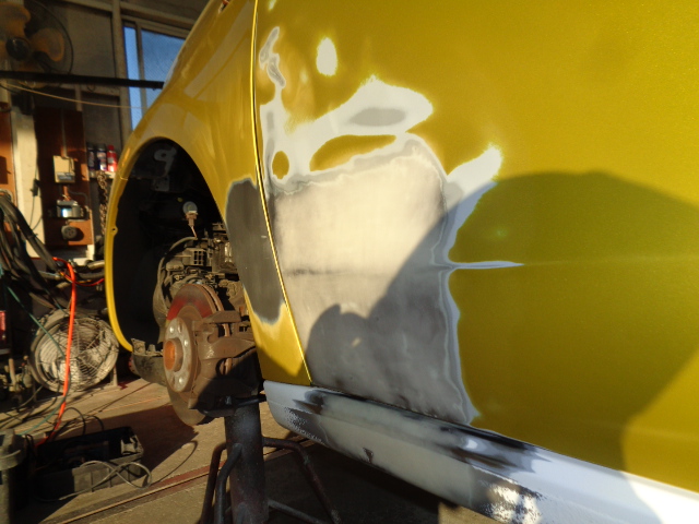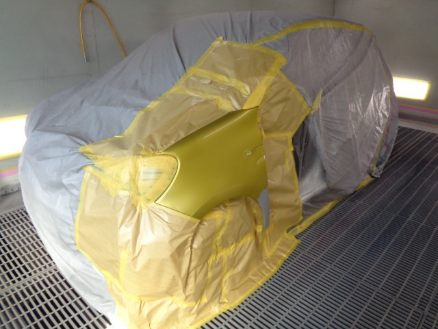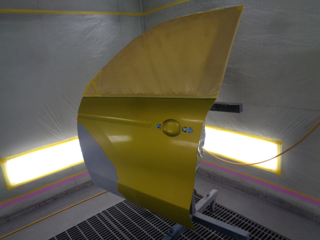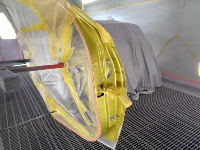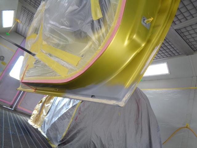 その車のカラーデータを元に、数十種類の原色を使用、緻密な調合を繰り返し現車に合わせていきますが、今回はその元となるカラーデータが現車と全く違う😅。そういうこともあります。でもここからが弊社の技術の見せ所。鈑金も塗装も何事もなかったかのように仕上げます。