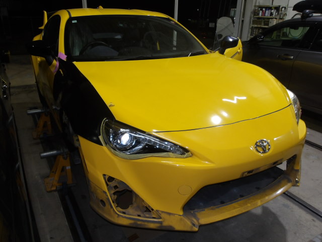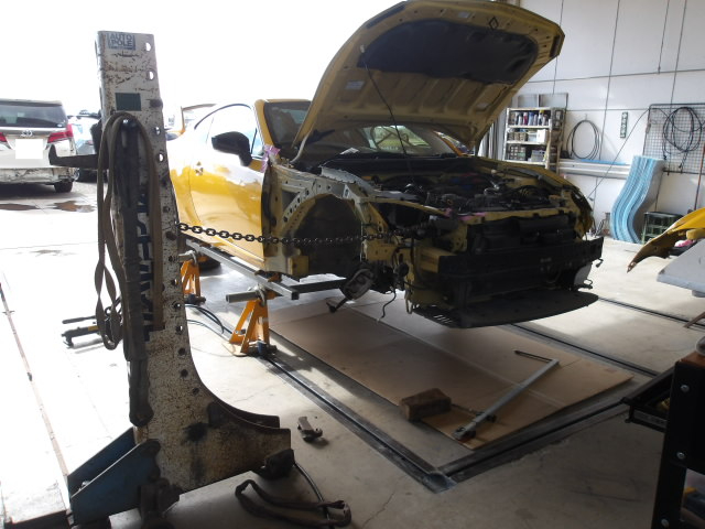 トヨタ86フレーム修正/保険ロードサービスレッカー搬入