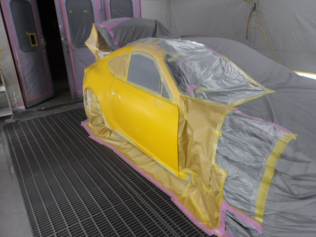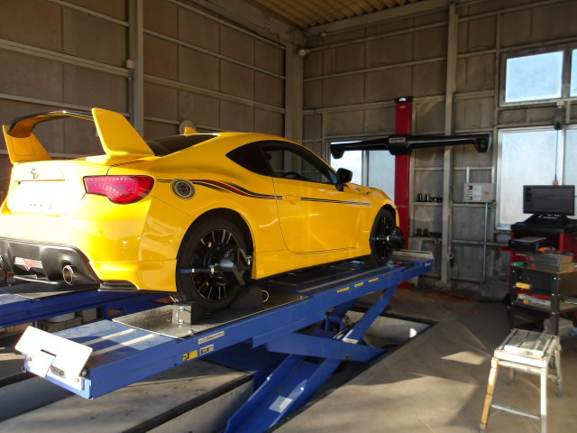 レッカーで運ばれてきたトヨタ86は、イエローリミテッドエアロパッケージ。